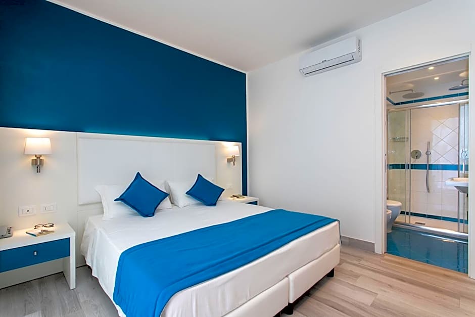 This en suite double/ twin room has a furnished terrace with sea view, tile/marble floor, indipendent air conditioning, flat-screen TV. The private bathroom includes a hairdryer.