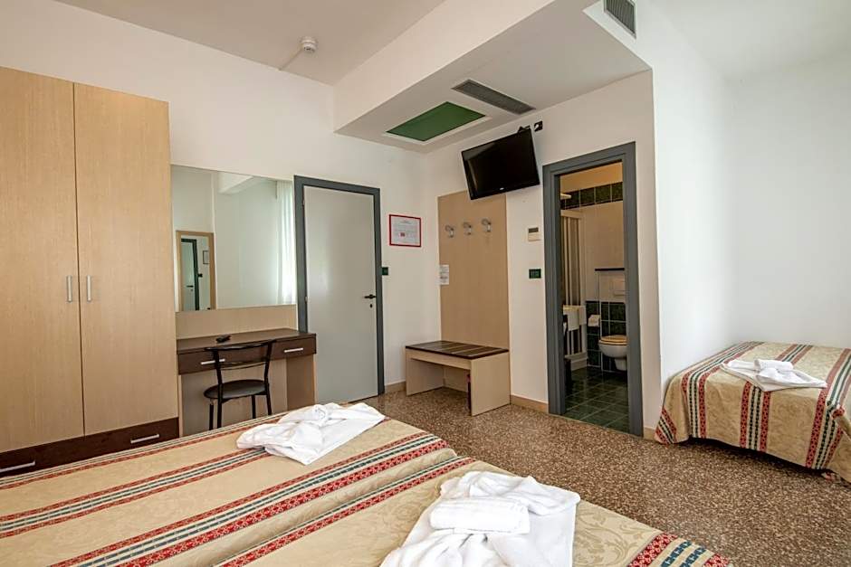 This triple room features a double and a single bed, tile/marble floor, air conditioning, satellite TV and a private bathroom.