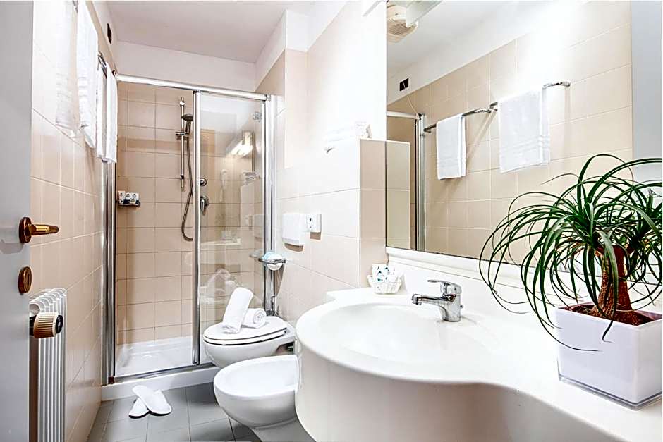 During the warmer seasons, guests can take advantage of the hotel's outdoor swimming pool. With an infinity edge and a shallow end, this pool offers a refreshing escape for adults. Whether you're looking to lounge by the poolside or take a leisurely swim, the pool area provides a tranquil setting to soak up the sun and unwind while enjoying the picturesque views of Lignano Sabbiadoro.