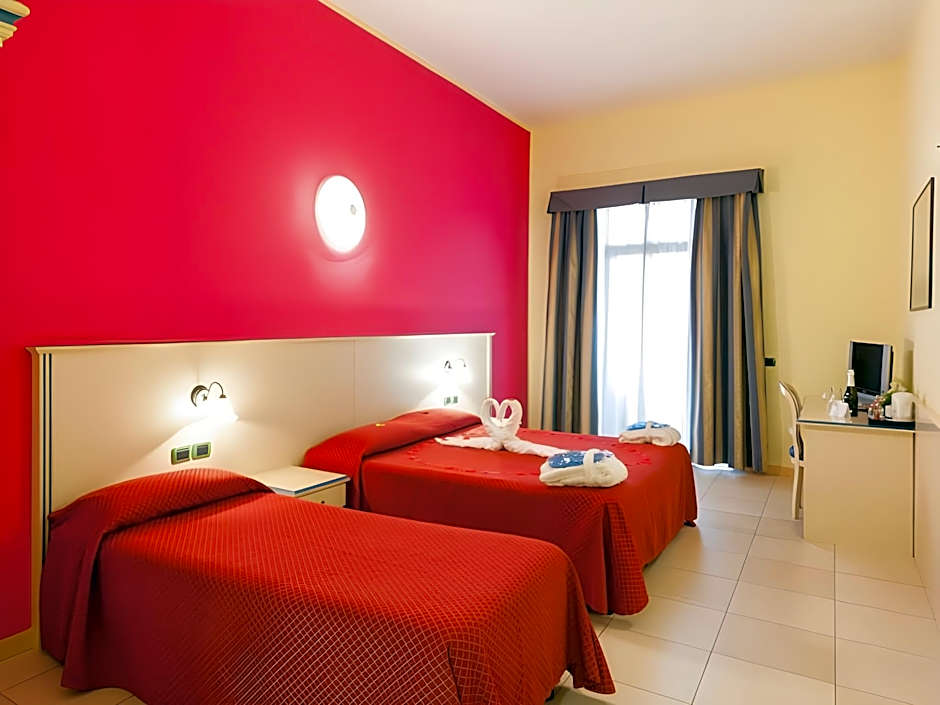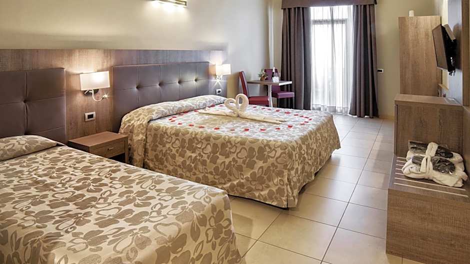 Budget room where you don't expect luxury or design but comfort adequate for the quality/price ratio. The Standard triple rooms have a surface area of approximately 16m2 with a view of the back or the interior of the hotel. The flooring is in light tiles and the bathroom has a shower. The Standard triple rooms all have 3 beds, including a double bed composed of two double beds and a single bed. Dogs are allowed, on request, with a supplement