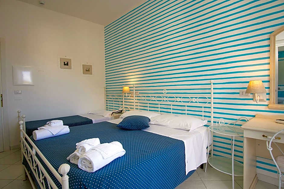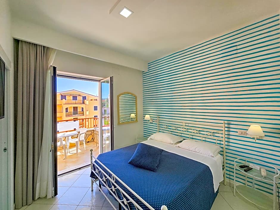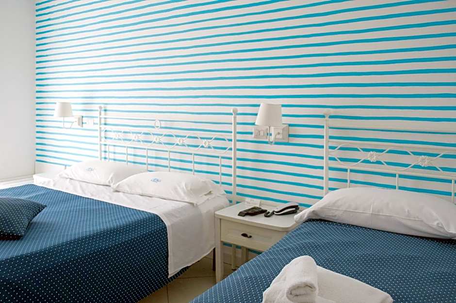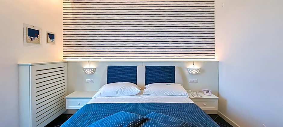 Hotel Calanca offers a Quadruple Room with Direct Sea View, accommodating 2 adults and 1 child. This room does not allow smoking and features a Queen size bed, with a room size of 172 sqft.
