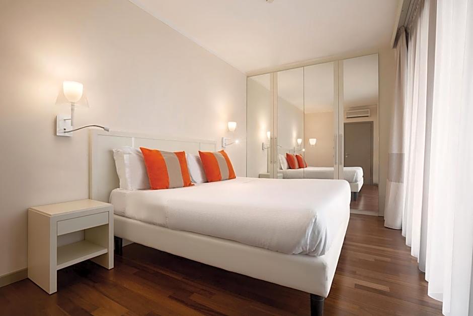 Ramada Plaza Milano offers a variety of rooms including Studios, Suites, and Standard Double or Twin Rooms. Rooms accommodate 2 adults and 1 child, with a Queen or Twin beds available. Smoking is not permitted in any of the rooms. Room sizes range from 248 sqft to 431 sqft.