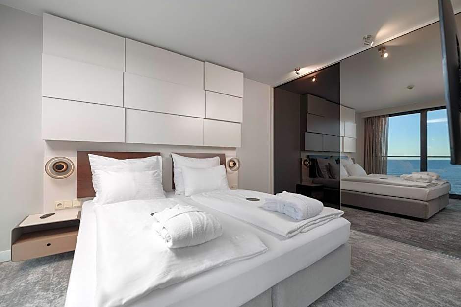 This suite features a hot tub, spa bath and sauna. This suite consists of 1 living room, 1 separate bedroom and 1 bathroom with a walk-in shower and free toiletries. The air-conditioned suite provides a flat-screen TV with cable channels, soundproof walls, a mini-bar, a tea and coffee maker as well as city views. The unit offers 2 beds.