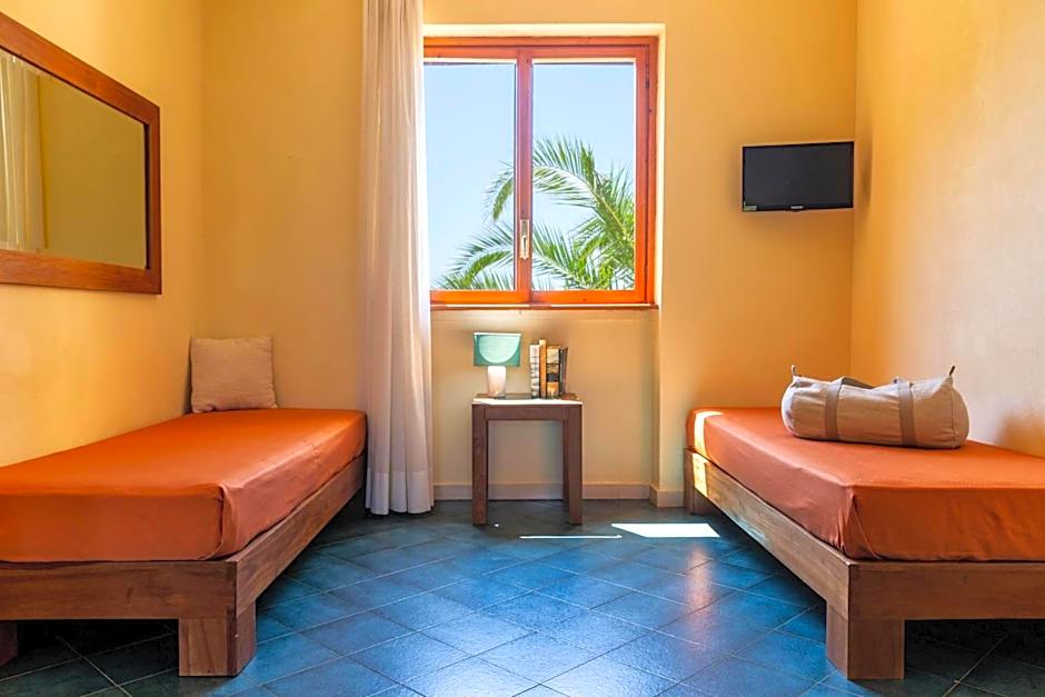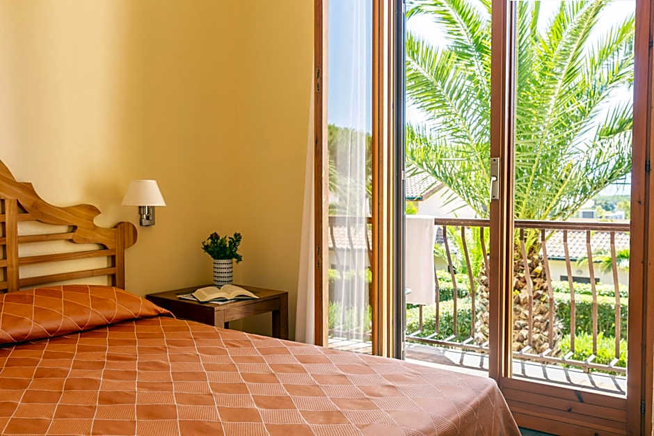 Air-conditioned room with attached bathroom with a TV. Some have views of the Mediterranean Sea.