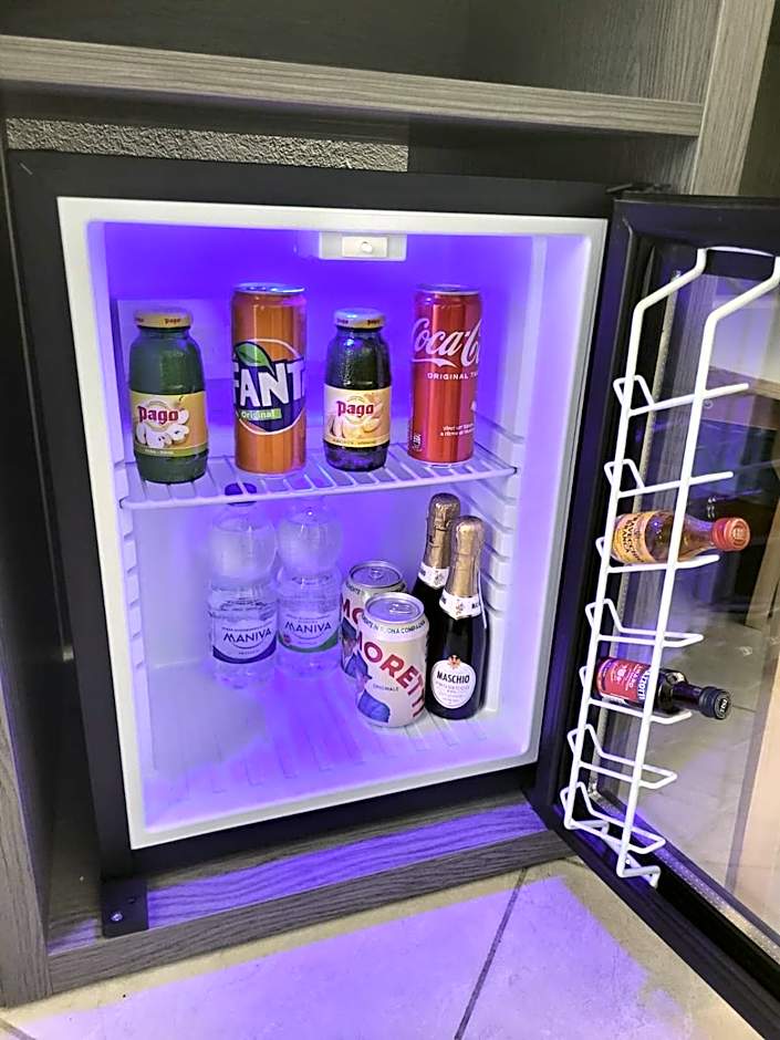 Modern room with satellite TV, a mini-bar, and a private bathroom with hairdryer. Offers air conditioning and free Wi-Fi.