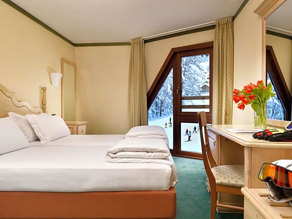 Facilities lean into an alpine vibe with skiing and spa/wellness packages, plus a free indoor swimming pool. Free Wifi, private parking, a fitness center, and a spa are on-site, with sauna available as well. The property is pet-friendly (extra charges) and features a free kids' club and a kid-friendly buffet. Dining options include a restaurant and a bar, while ski rental on site supports mountain days. Practical touches include a 24-hour front desk, private entrance, free on-site parking, mountain views, non-smoking rooms, an elevator, a playground, a bidet, and free toiletries. Some services, such as airport shuttle and massages, carry extra charges.