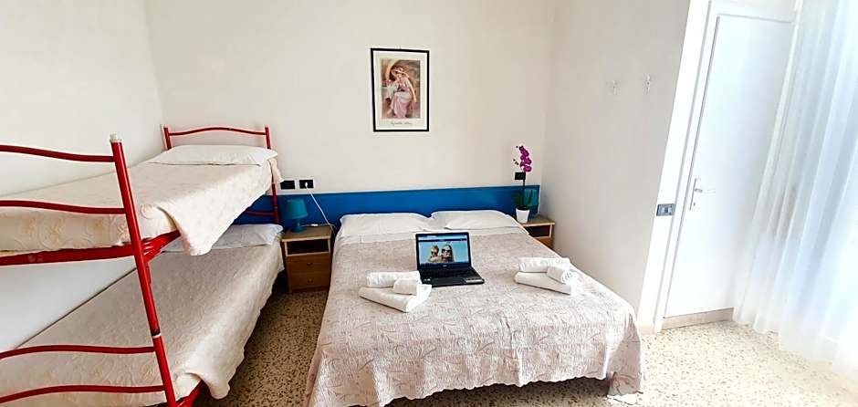 The quadruple room offers air conditioning, a wardrobe, as well as a private bathroom featuring a shower and a bidet. Rooms on the upper floors are reachable by elevator.