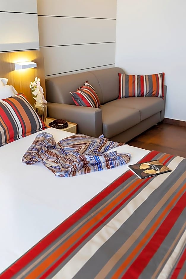 Boasting a spa bath, seating area and a private furnished balcony, this modern junior suite includes bathrobes and slippers, air conditioning and free WiFi.