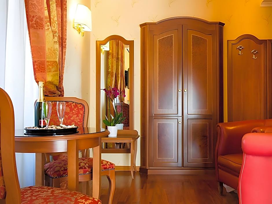 Hotel Amadeus offers a plethora of amenities for guests to enjoy, including free wifi, a relaxing spa tub, hot tub, air conditioning, and soundproof rooms to ensure a peaceful night's sleep. The hotel features an elevator for easy access to all floors, a lovely terrace and patio to soak in the Italian sun, and private bathrooms equipped with free toiletries and a relaxing bathtub. You'll surely feel pampered and right at home at Hotel Amadeus.