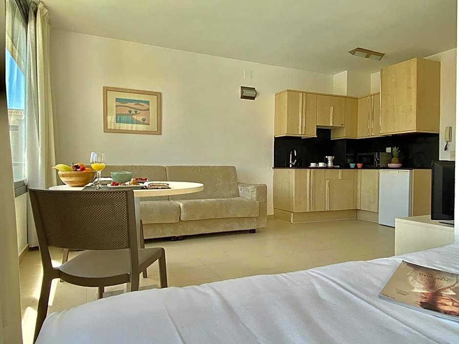 Room options cover a wide range, from Studios to Apartments with 2 or 3 bedrooms. Some configurations feature balconies, and several rooms offer scenic views such as sea or panoramic vistas. Access to upper floors is straightforward via the elevator, adding a touch of convenience to every stay.