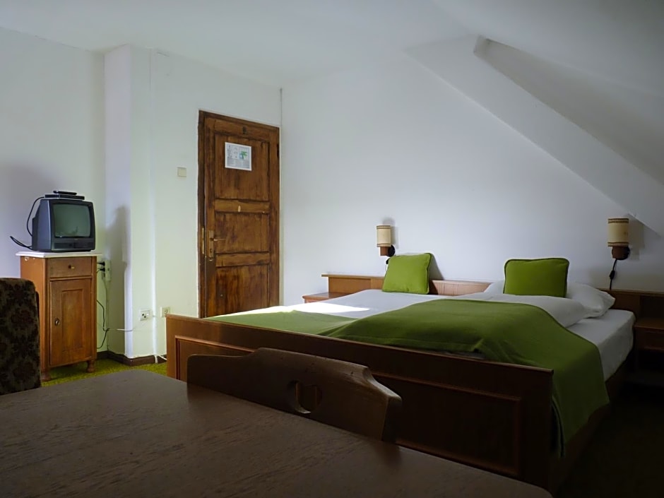 Room with attached bathroom decorated in a simple Dolomite style. Includes a flat-screen TV and a hairdryer. Ironing facilities are available on request.