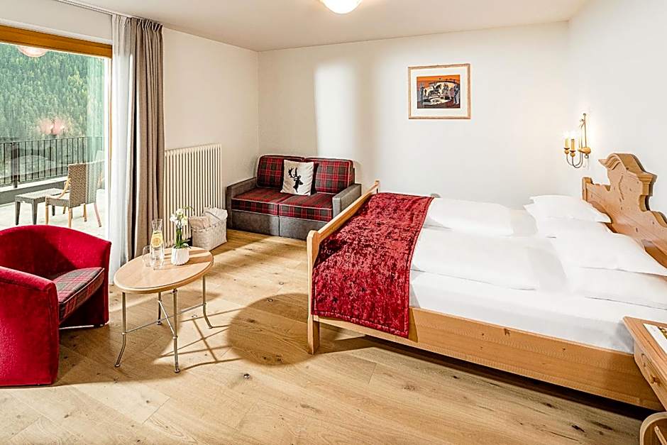 Elegant suite with balcony overlooking the Dolomites.