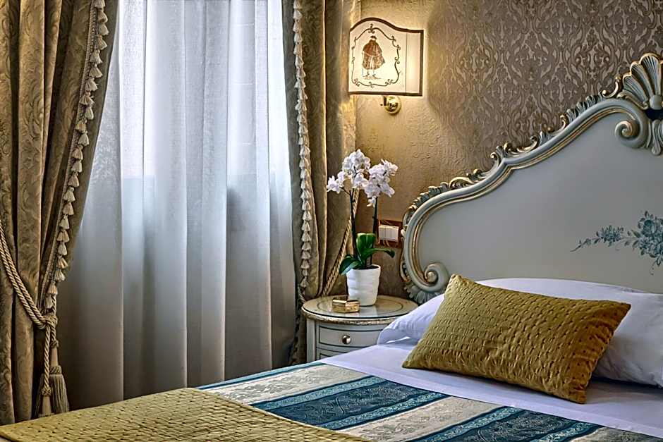 Room with attached bathroom with elegant, Venetian-style furnishings. Offers free Wi-Fi, air conditioning, and a satellite TV.