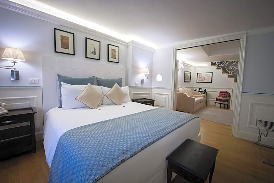 Elegant room with superior furnishings, paneled walls, parquet floor, and a chromotherapy shower and hairdryer in the private bathroom. Includes free Wi-Fi, a satellite LCD TV and a mini-bar. Please specify bed-type preference when booking.