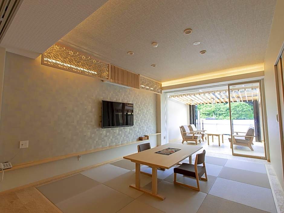 客室は、こぢんまりした滞在向けからファミリー向けの間取り、和風の静かな部屋まで多彩にそろっています。例として、Room With Mountain View(大人2名+子供1名で宿泊可)、Room - 2 Double(ダブルベッド2台、 大人4名+子供3名で宿泊可)、およびTriple Room(布団3枚、 大人3名+子供4名で宿泊可)などがあります。ほかにも2名向けのRoom With Viewや、Japanese Style, Scenic View with Private Bathroom(和室・絶景/専用バスルーム付き)、Japanese Style, Mountain View(和室・山側)などの和室タイプ、さらにUJI - Japanese-Style Room with Hotspring Open Air BathやIZUTSU - Japanese-Style Room with Hotspring Open Air Bathのような温泉露天風呂付きの客室もあります。