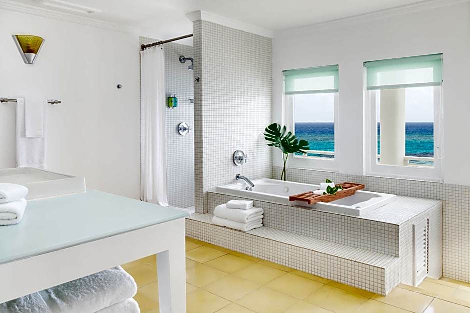 Offering Caribbean Sea views from its balcony, this spacious, air-conditioned room has attractive, white décor. There is free Wi-Fi, a flat-screen TV, mini-bar and a coffee maker. Room service is available from 7:30 a.m. to 9:30 p.m.
