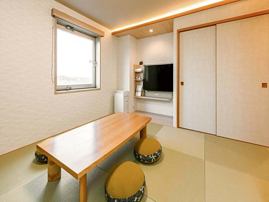 The quadruple room includes a private bathroom, well-fitted with a bath, a shower, a bidet, a hairdryer and slippers. This quadruple room is air-conditioned and has a flat-screen TV, tatami, soundproof walls and an electric kettle. The unit has 4 futons.