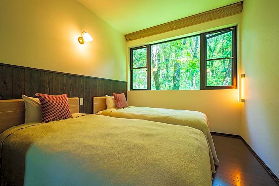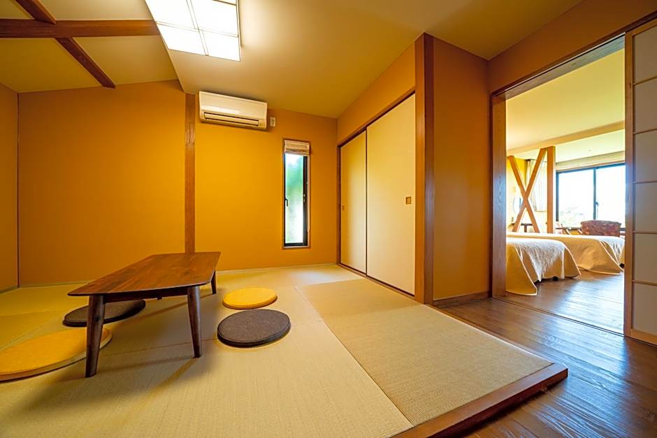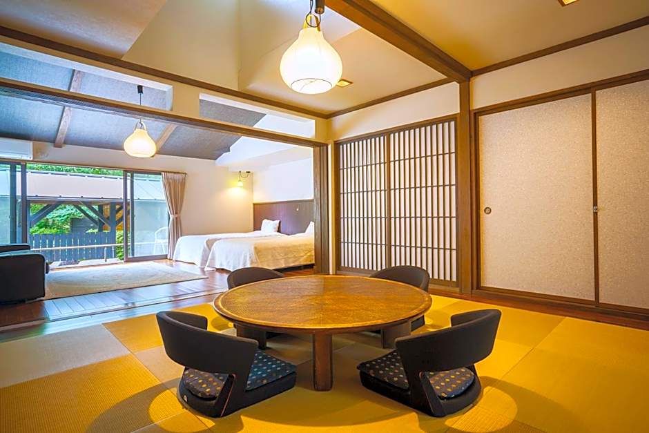 This spacious suite includes 1 living room, 1 separate bedroom and 1 bathroom with a bath and free toiletries. This suite is air-conditioned and has tatami, a tea and coffee maker as well as a terrace with mountain views. The unit has 3 beds and 2 futons.