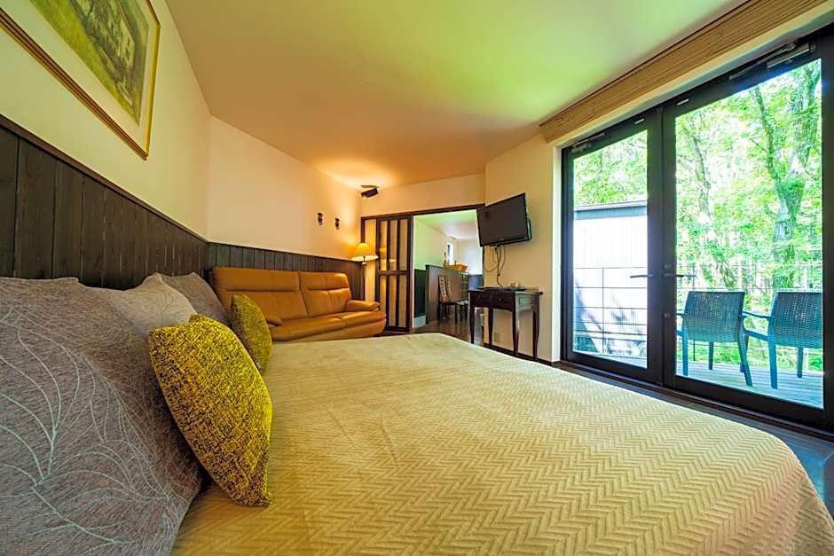 The hotel is located in a beautiful forest, quiet and tranquil. There was an onsen in our room, which had hot water running all the time, and that was a wonderful experience. The staff booked a dinner for us in a restaurant nearby, which was amazing. The room had ample space, and provided amenities like cosmetics, slippers, comfortable robes, local sweets, tea and coffee. The breakfast was great and copious.