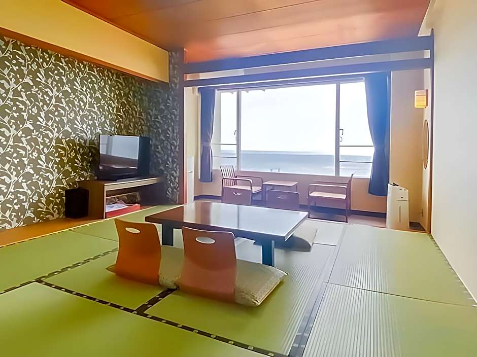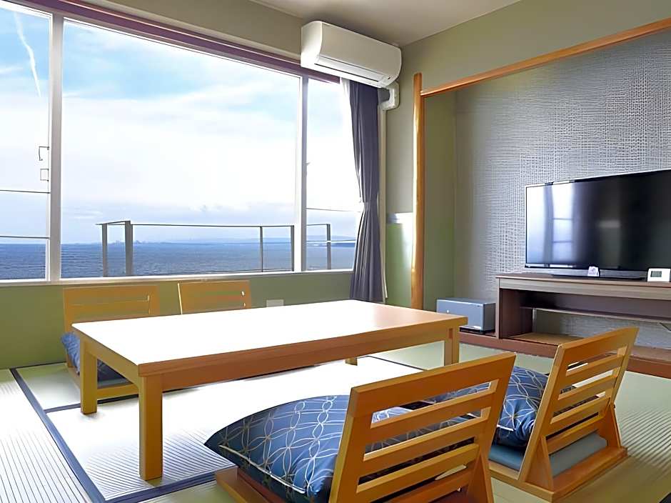 The quadruple room features a shared bathroom equipped with a hairdryer and slippers. The air-conditioned quadruple room provides a TV, tatami, a safe deposit box, heating as well as sea views. The unit offers 4 futons.