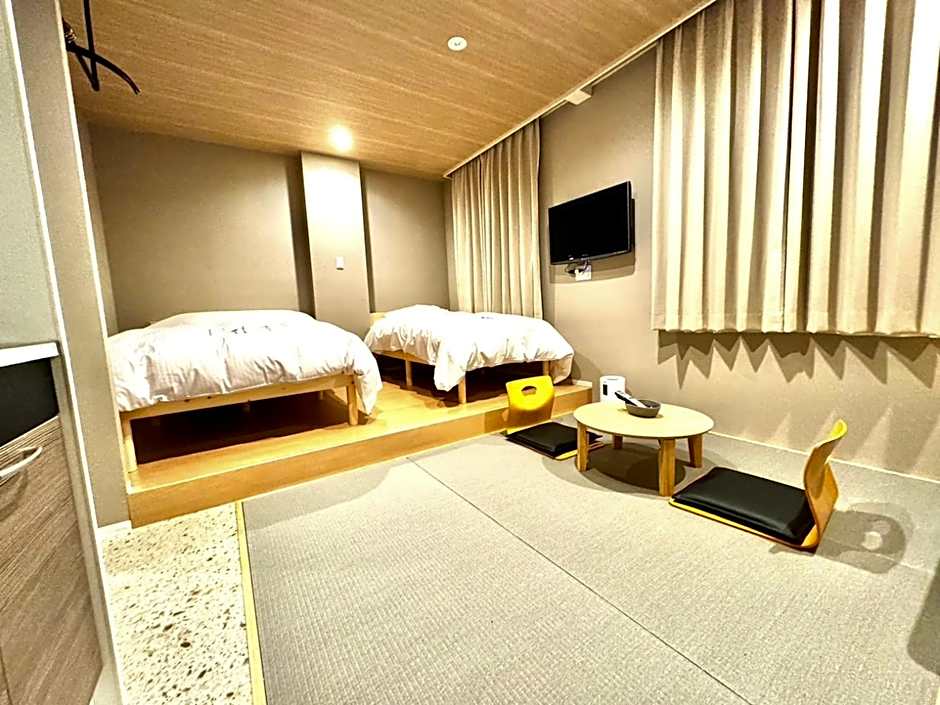 The spacious twin room offers air conditioning, an electric kettle, as well as a private bathroom featuring a bath and a shower. The twin room's kitchen, which has a refrigerator, is available for cooking and storing food. This twin room features yukata, heating and a TV with streaming services. The unit offers 2 beds.
