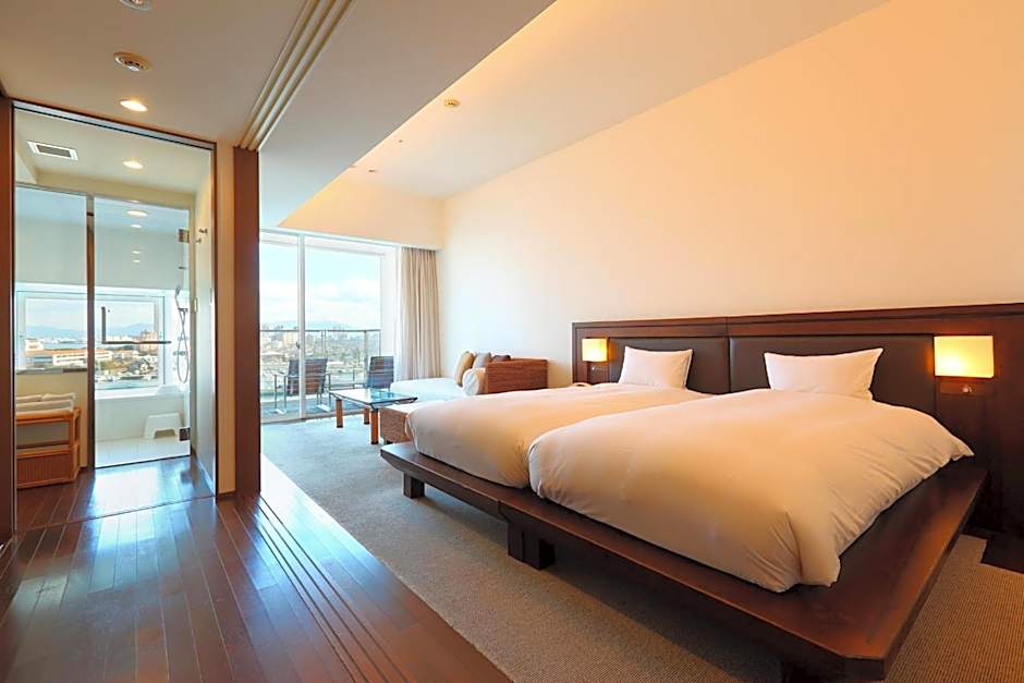 At Hotel Marinoa Resort Fukuoka, guests can choose from a Deluxe Twin Room suitable for single occupancy, accommodating up to 4 adults and 1 child with twin beds and sofa beds, all in a smoke-free environment. Alternatively, the Standard Room for single occupancy is a triple room with twin beds and a sofa bed, accommodating up to 3 adults and 1 child, also without smoking allowance. Rooms range in size from 452 to 592 sqft.