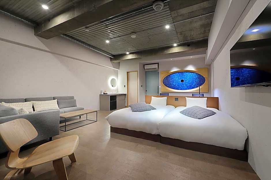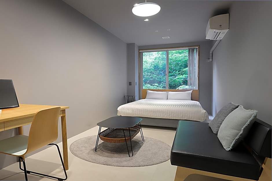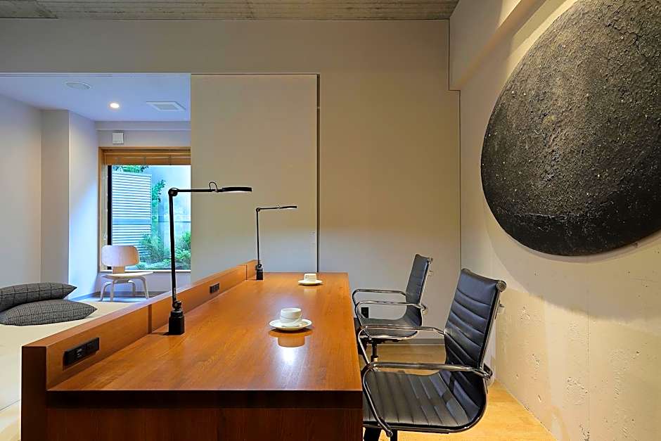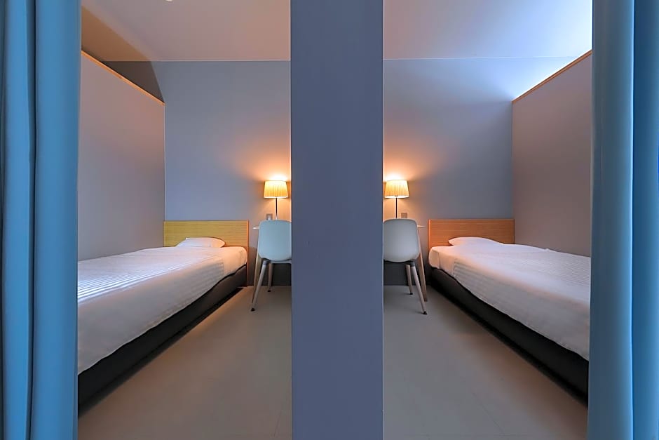 The twin room provides air conditioning, tatami, as well as a shared bathroom featuring a bidet and slippers. This twin room features heating and a TV. The unit offers 5 futons.