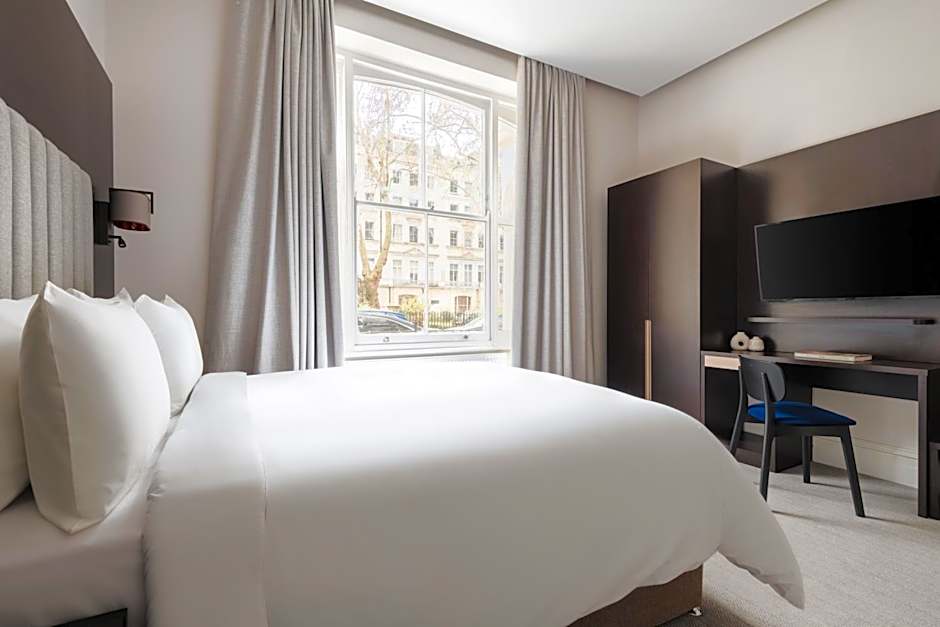 The fireplace is the standout feature of this family room. The family room is furnished with a desk and a seating area and features a mini-bar, a tea and coffee maker and a quiet street view. The unit has 4 beds.