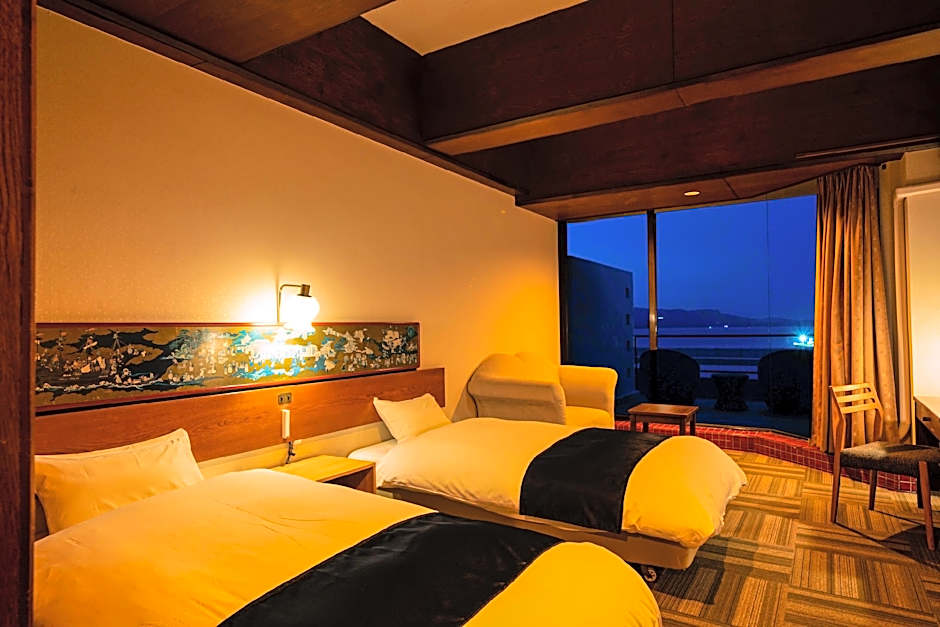 Offering free toiletries, this twin room includes a private bathroom with a bath, a shower and slippers. The air-conditioned twin room offers a flat-screen TV, an electric kettle, yukata, heating as well as sea views. The unit has 2 beds.