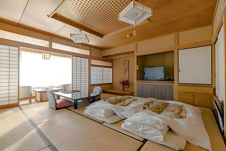 The spacious quadruple room features air conditioning, tatami, as well as a private bathroom boasting a walk-in shower and a bath. The quadruple room offers a dining area, a wardrobe, a safe deposit box, a flat-screen TV, as well as sea views. The unit has 5 futons.
