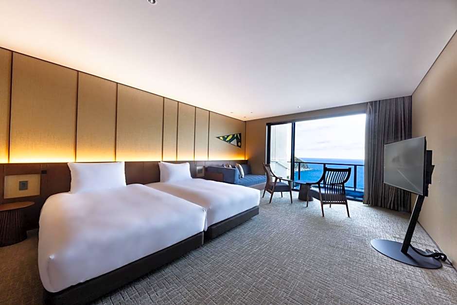 Guests will have a special experience as this twin room provides a hot tub, a private open-air bath and a spa bath. The spacious twin room offers air conditioning, soundproof walls, a terrace with sea views as well as a private bathroom featuring a shower. The unit offers 2 beds.