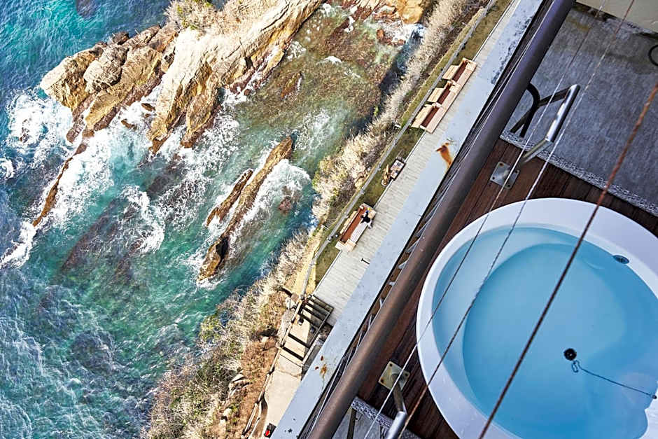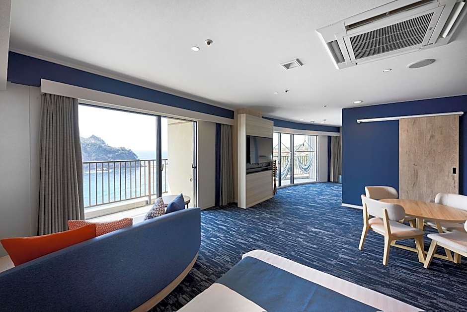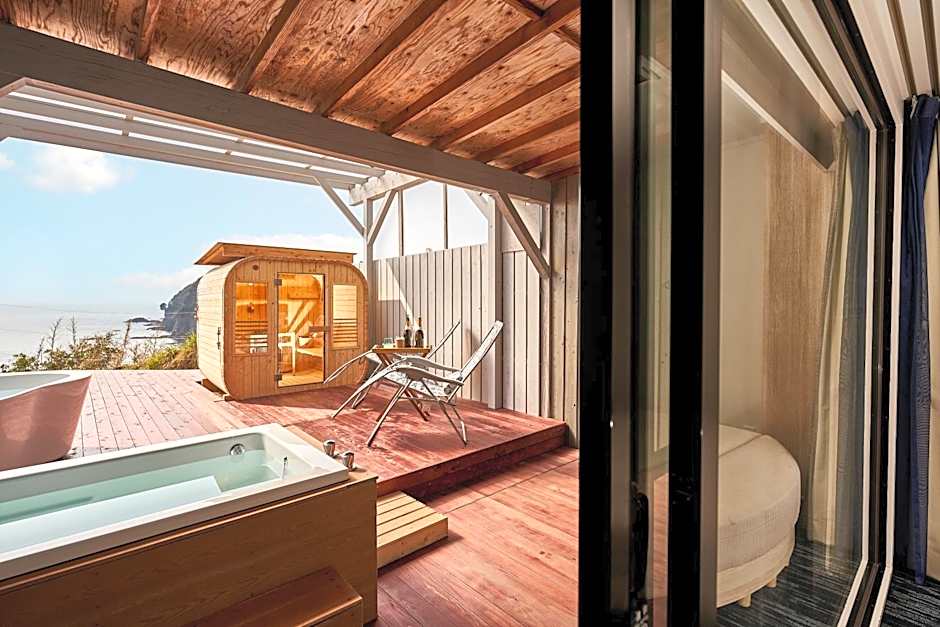 This twin room features a hot tub, private open-air bath and sauna. The spacious twin room provides air conditioning, soundproof walls, a terrace with sea views as well as a private bathroom featuring a bath. The unit offers 3 beds.