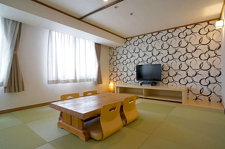 The triple room includes a private bathroom, well-fitted with a bath, a shower, a bidet, a hairdryer and slippers. The triple room provides air conditioning, tatami, an electric kettle, heating and a flat-screen TV. The unit offers 4 futons.
