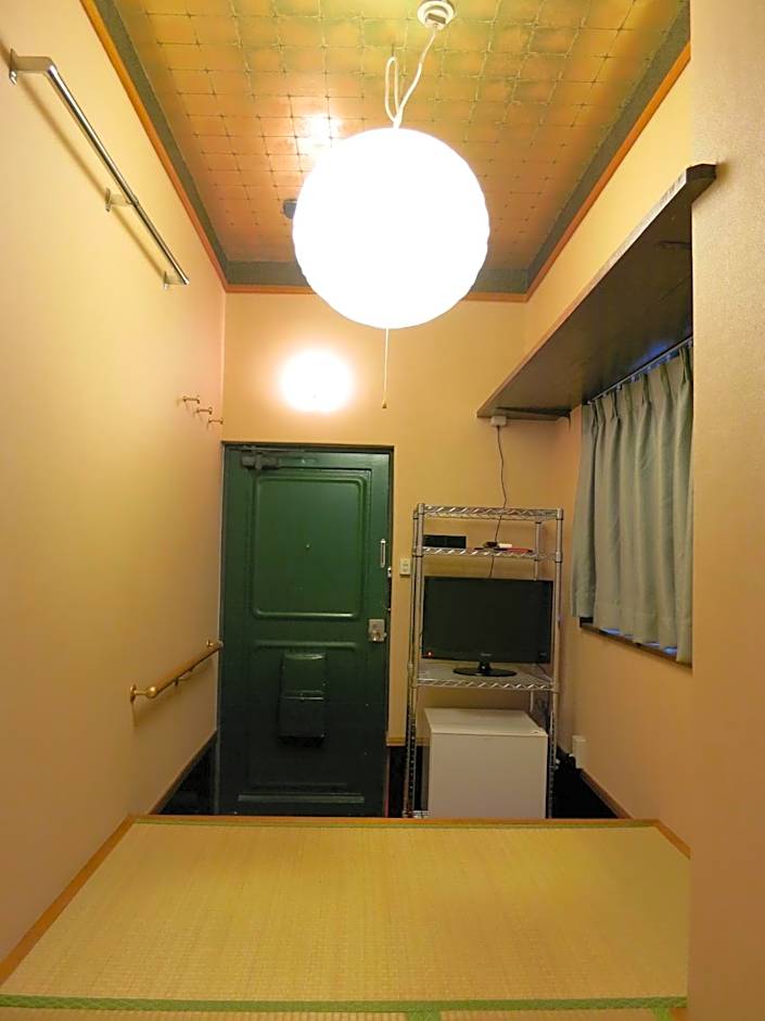 Features tatami (woven-straw) flooring and Japanese futon bedding. Bathrooms and toilets are shared. Small air-conditioned room with an LCD TV and a refrigerator.