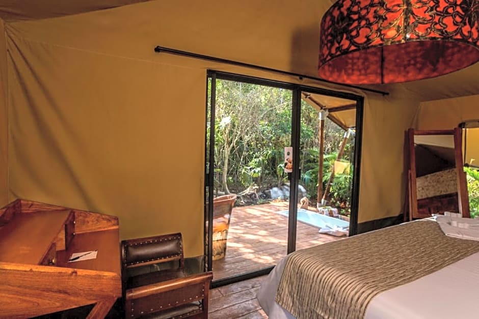 This family room features a private open-air bath and a sauna. The spacious air-conditioned family room provides a flat-screen TV, a private entrance, an electric kettle, a dressing room as well as garden views. The unit offers 7 beds.