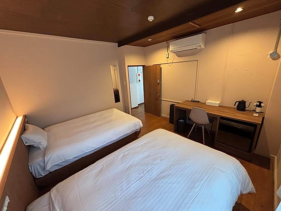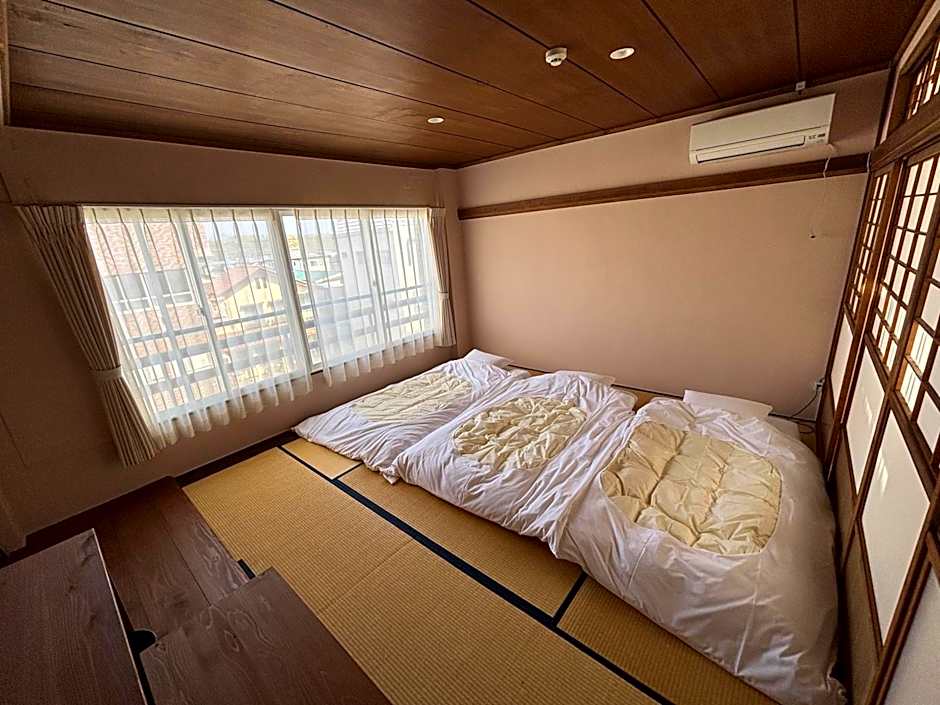The triple room provides air conditioning, tatami, as well as a shared bathroom featuring a shower and a bidet. The triple room offers an electric kettle and heating. The unit offers 3 futons.