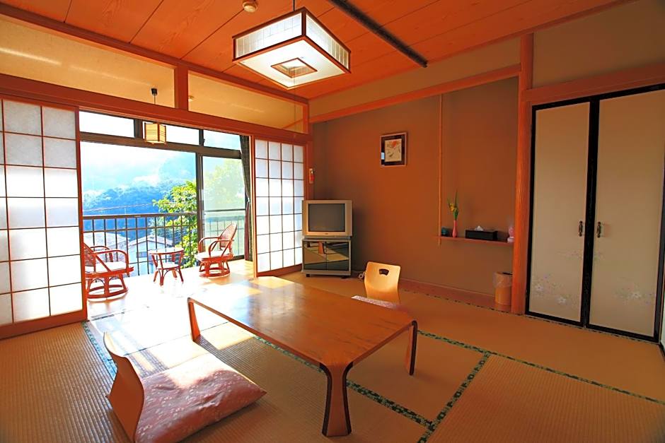 Featuring free toiletries, this quadruple room includes a shared bathroom with a hairdryer and slippers. The quadruple room has tatami floors, a seating area with a flat-screen TV, air conditioning, a safe deposit box as well as mountain views. The unit has 4 futons.