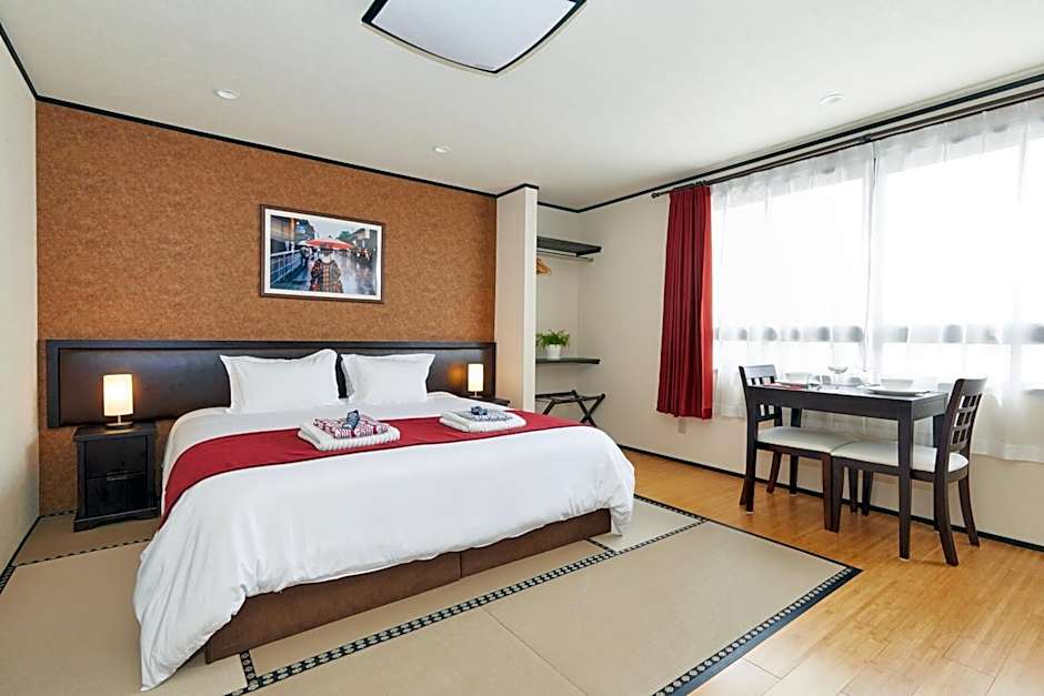 Providing free toiletries, this double room includes a private bathroom with a bath, a shower and a bidet. The air-conditioned double room provides a flat-screen TV, an electric kettle, parquet floors, yukata as well as mountain views.