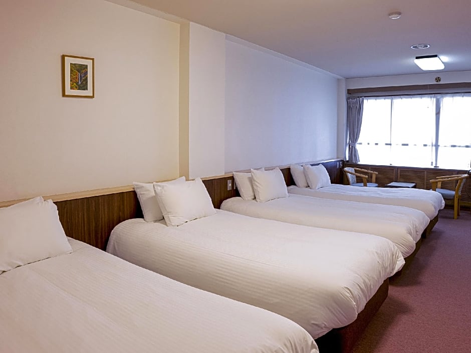 At Chalet Shiga, guests can choose from a variety of room types including Triple, Twin, Quadruple, and Family rooms. All rooms are non-smoking, ranging in size from 215 to 484 sqft, accommodating up to 5 adults. Bed configurations include Twin beds, Futon Mats, and a mix of both in certain rooms.