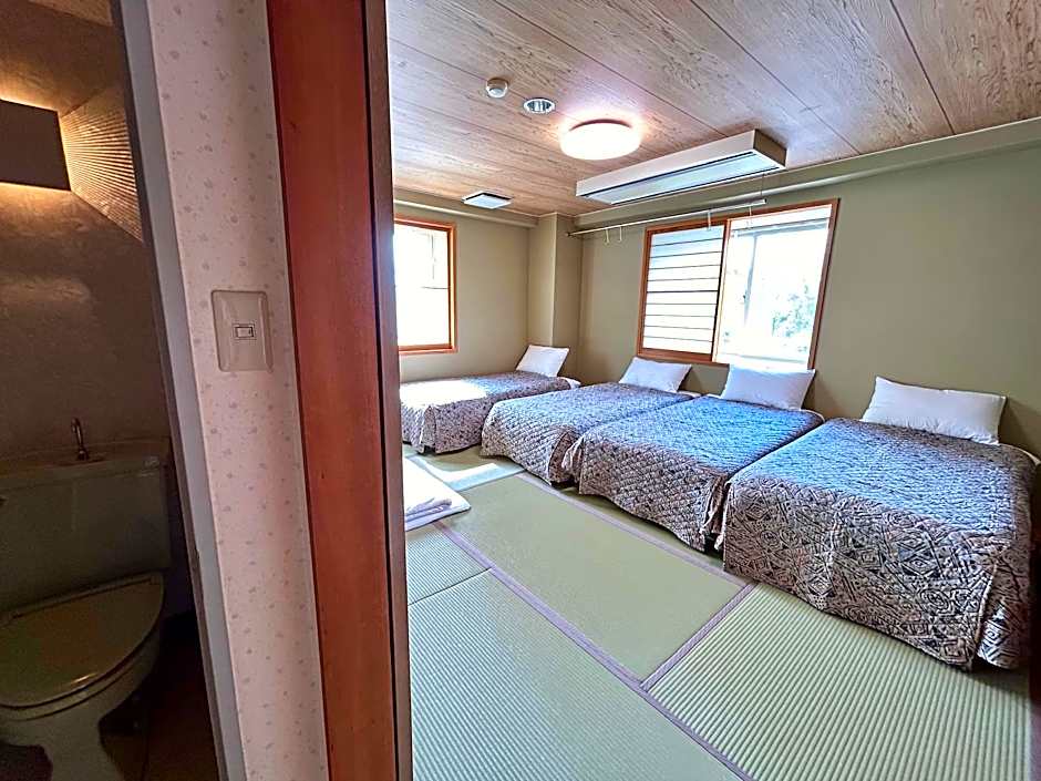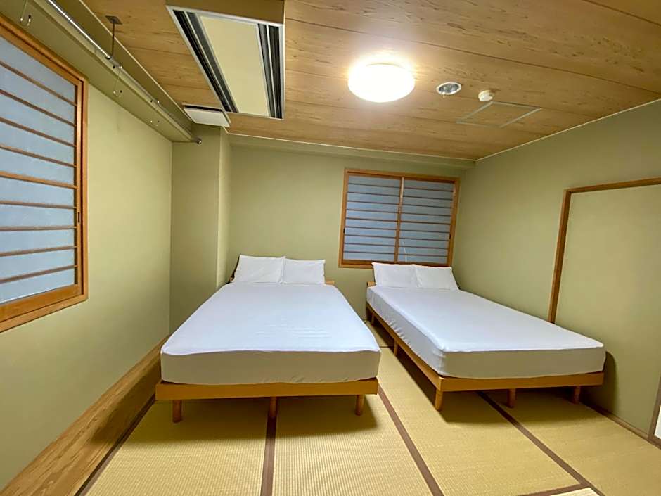This quadruple room has a shared bathroom and an electric kettle. The air-conditioned quadruple room features a flat-screen TV, tatami, a dining area, a safe deposit box as well as a quiet street view. The unit has 2 beds.