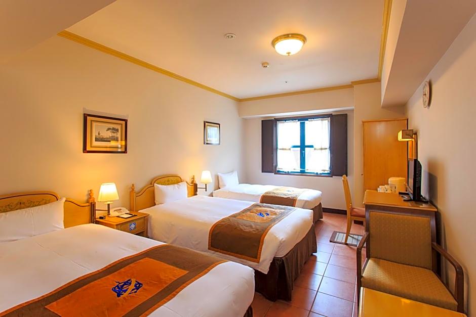Hotel Monterey Nagasaki offers a variety of rooms including Quadruple, Triple, Double, Twin, and Single rooms. All rooms are non-smoking and come with either twin beds, a small double bed, or a sofa bed, accommodating up to 4 adults and 1 child. The room sizes range from 151 to 280 sqft, providing options suitable for different group sizes.