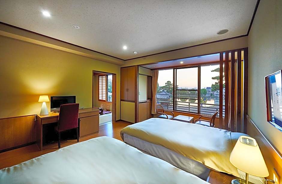 The spacious twin room features air conditioning, tatami, as well as a private bathroom boasting a bath and a shower. The unit has 2 beds.
