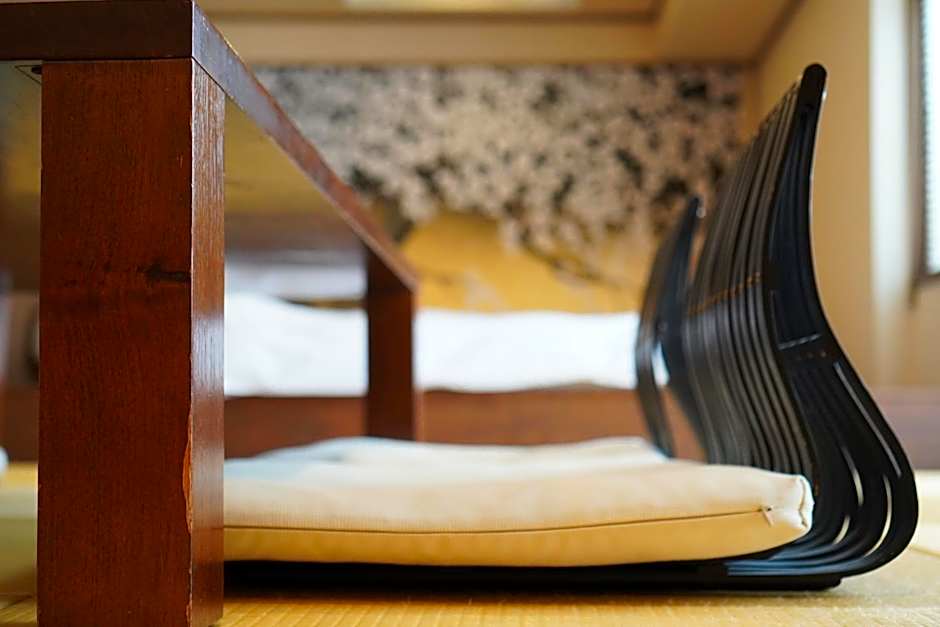 This quadruple room features Western beds and futon bedding on a tatami (woven-straw) area. A kotatsu (heated leg-warming table) is available during the winter season.