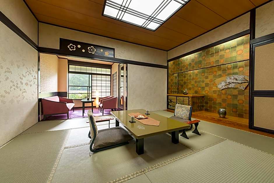 Features tatami (woven-straw) flooring and Japanese futon bedding. Each comes with a flat-screen TV, Japanese Yukata robes and an private bathroom.