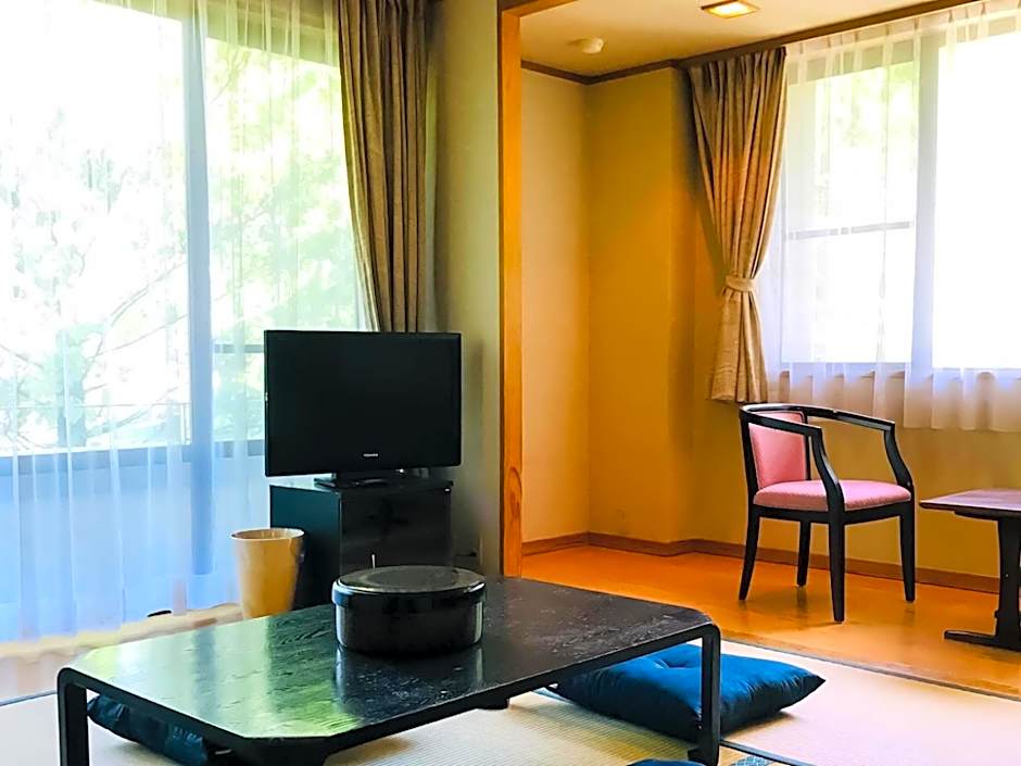 The spacious family room features a shared bathroom, air conditioning, tatami, as well as a seating area with a flat-screen TV. This family room has a wardrobe, a safe deposit box, a TV and a balcony. The unit offers 3 beds and 4 futons.