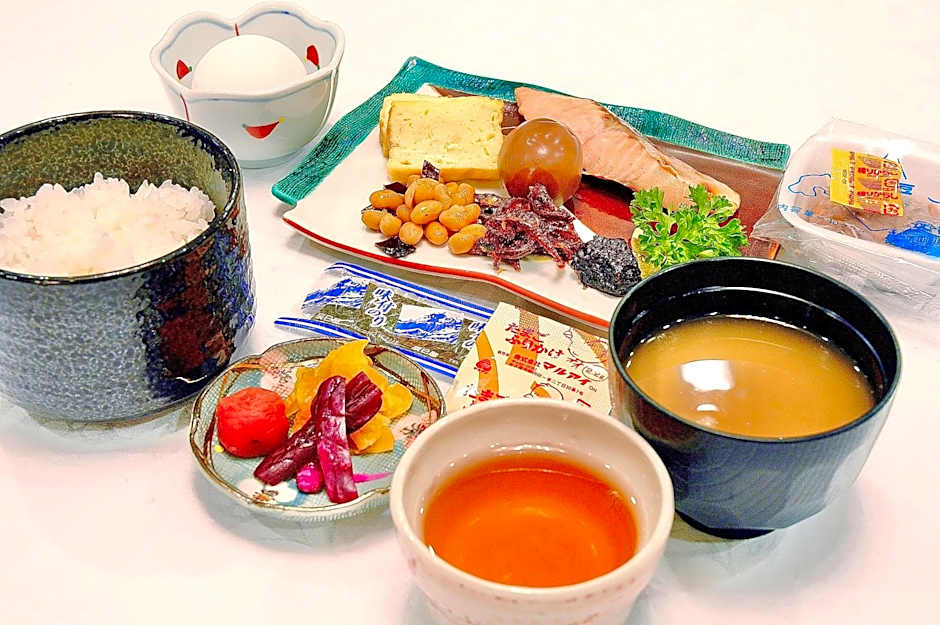 Free breakfast buffet and onsen.