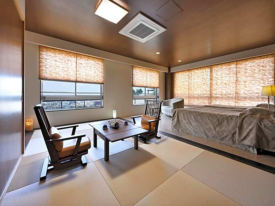 The air-conditioned suite has 1 bedroom and 1 bathroom with a bath and a shower. The suite offers tatami, soundproof walls, a safe deposit box, an electric kettle, as well as a flat-screen TV. The unit has 2 beds.