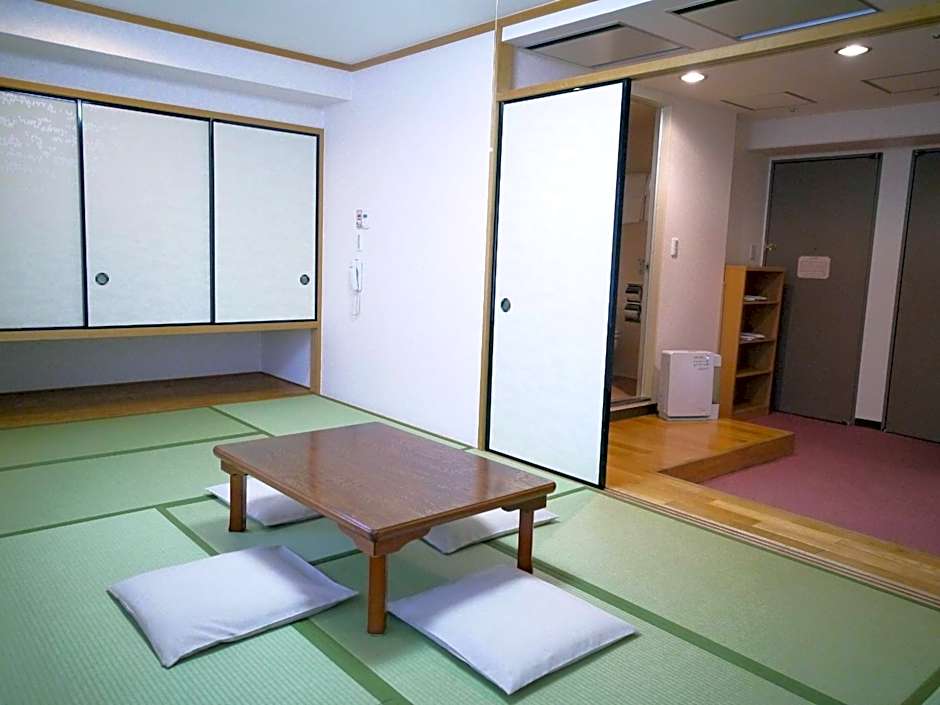 The family room includes a private bathroom, well-fitted with a bath, a shower, a bidet, a hairdryer and slippers. This family room is air-conditioned and has a flat-screen TV with cable channels, tatami, a wardrobe and an electric kettle. The unit has 2 futons.