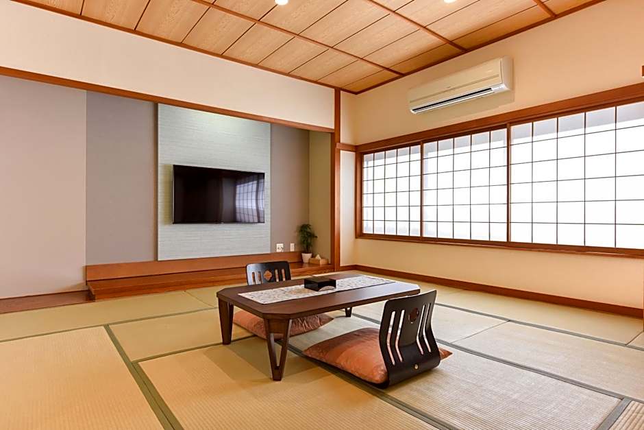 This quadruple room features a private open-air bath. The quadruple room features air conditioning, tatami, as well as a private bathroom boasting a bath and a shower. The quadruple room offers a safe deposit box, an electric kettle, yukata, heating and a flat-screen TV. The unit has 4 futons.