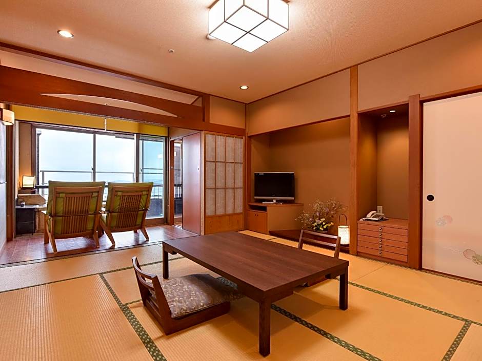 Providing free toiletries, this twin room includes a private bathroom with a bath, a shower and a hairdryer. The air-conditioned twin room provides a flat-screen TV, a safe deposit box, an electric kettle, yukata as well as sea views. The unit offers 2 beds.